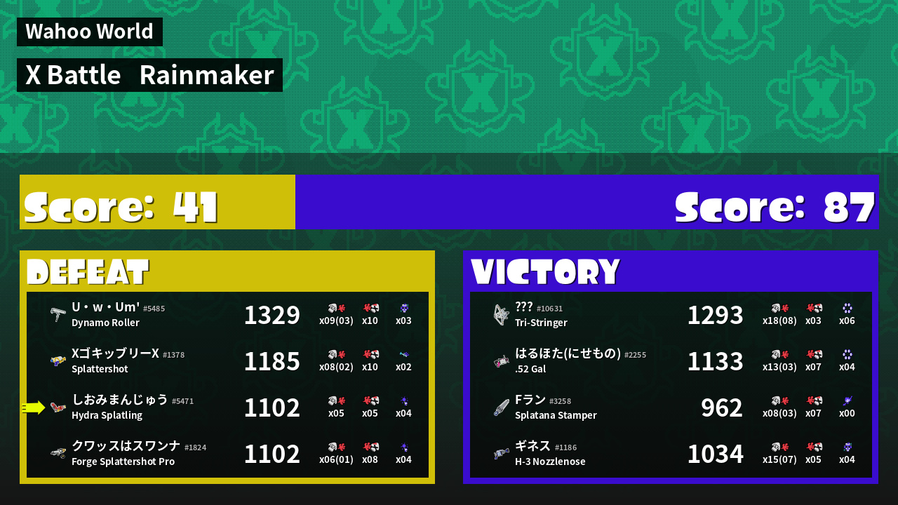 | Weapon | Hydra Splatling ( Autobomb / Booyah Bomb) | ||