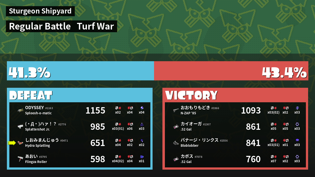 | Mode | Turf War - Regular Battle | ||