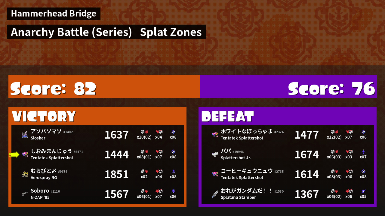 | Mode | Splat Zones - Anarchy Battle (Series) | ||