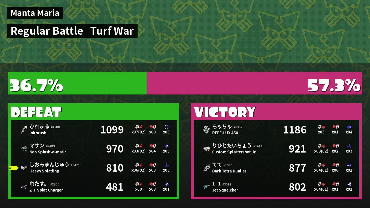 | Mode | Turf War - Regular Battle | ||