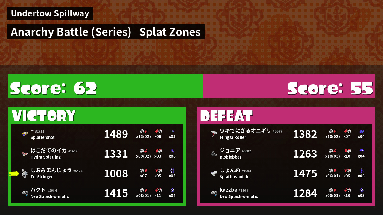 | Mode | Splat Zones - Anarchy Battle (Series) | ||