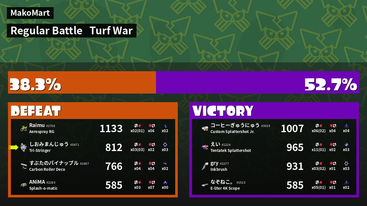 | Mode | Turf War - Regular Battle | ||
