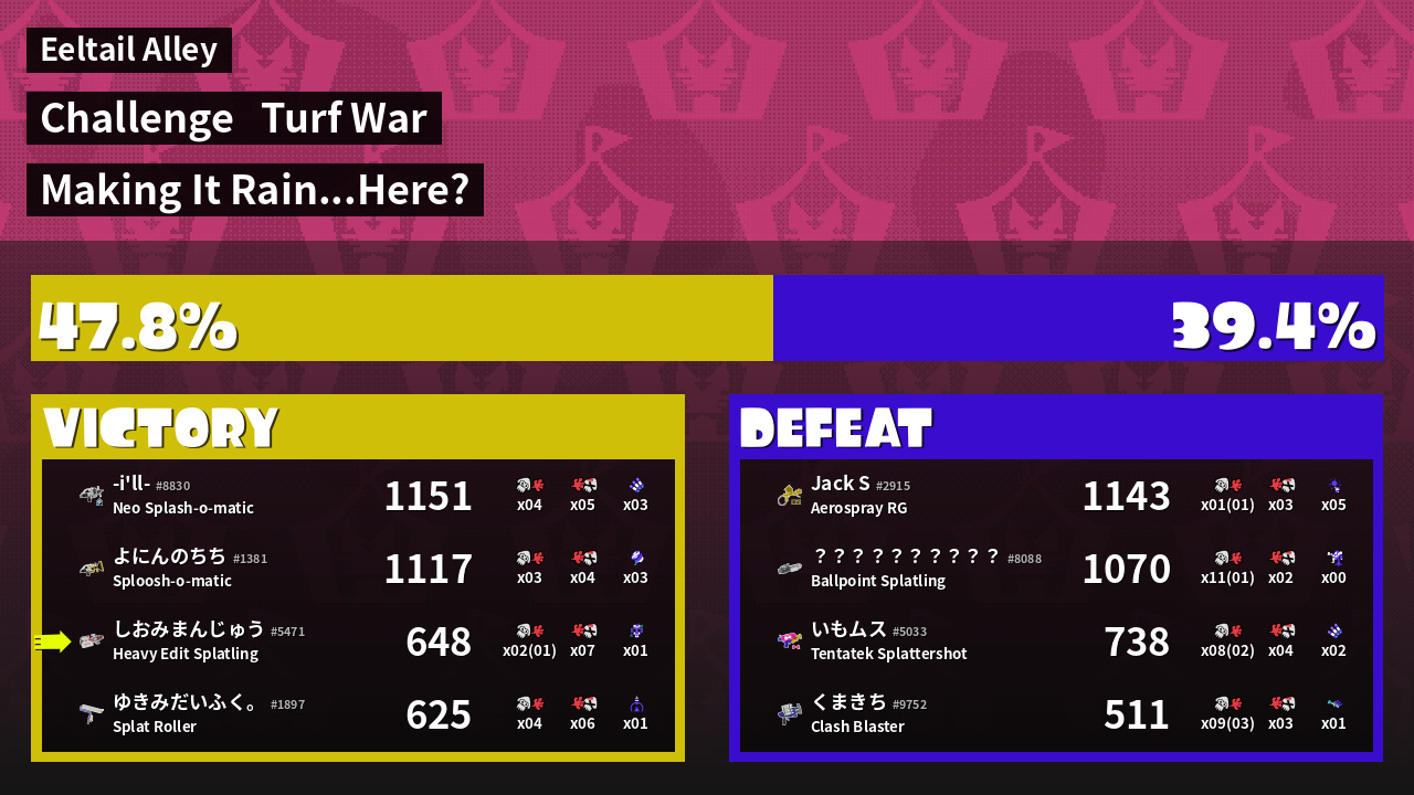 | Mode | Turf War - Challenge | ||