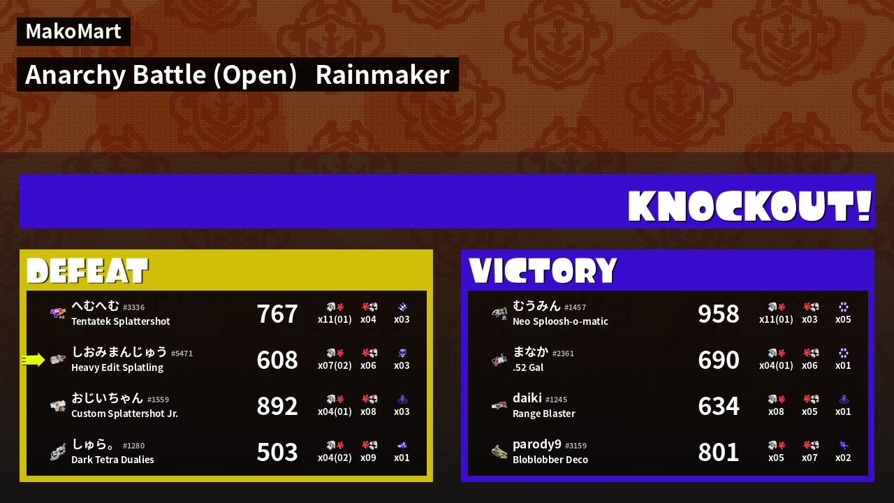 | Mode | Rainmaker - Anarchy Battle (Open) | ||