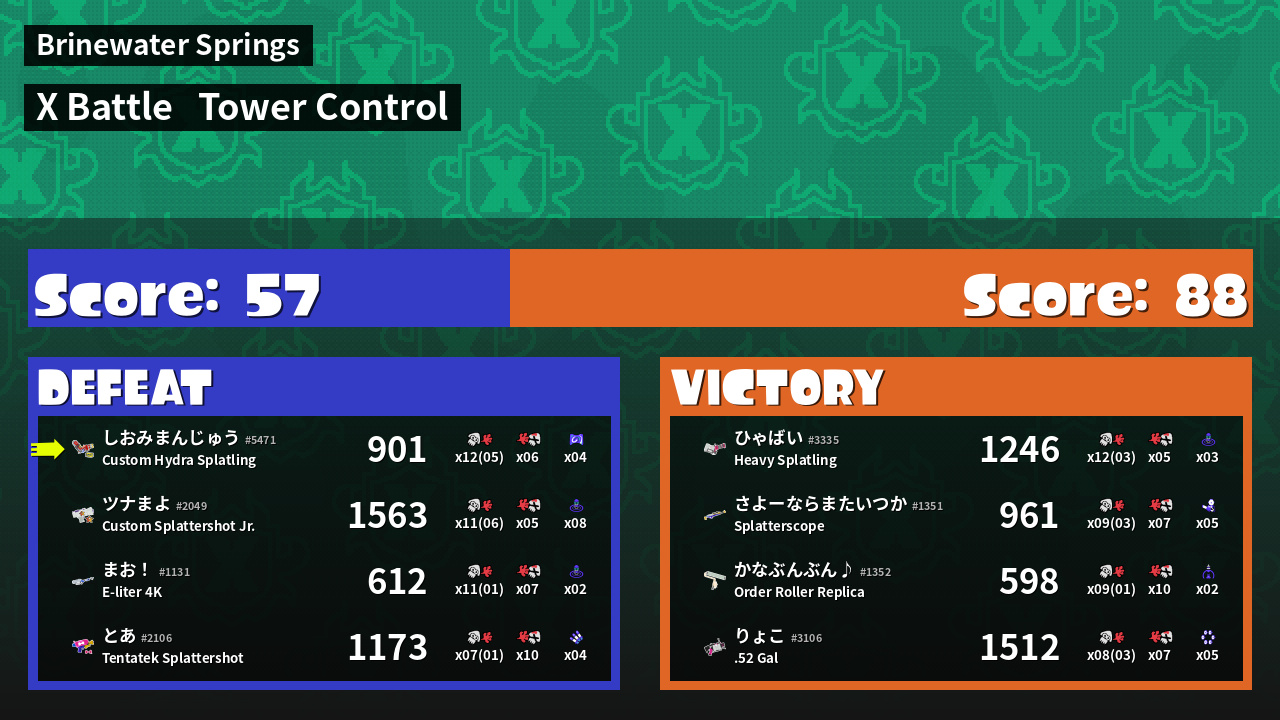 | Mode | Tower Control - X Battle | ||