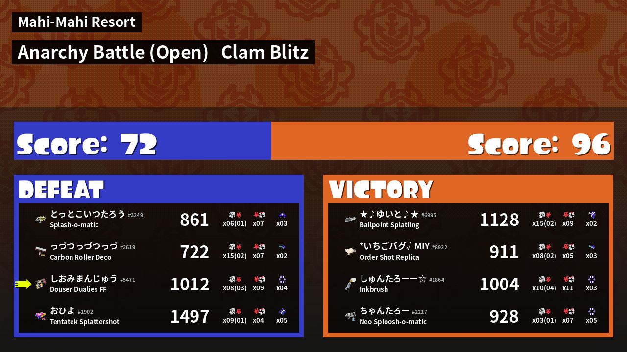 | Mode | Clam Blitz - Anarchy Battle (Open) | ||