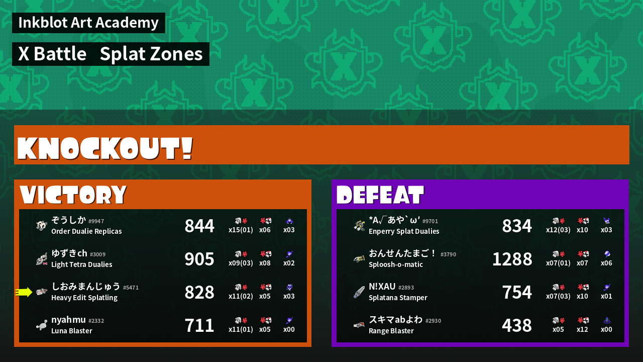| Medals | #1 Super Jump Spot #1 Tacticooler User #2 Overall Splatter | ||