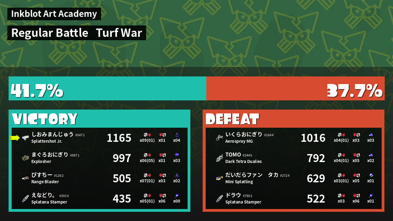 | Medals | #1 Overall Splatter #1 Turf Inker #1 Home-Base Inker | ||