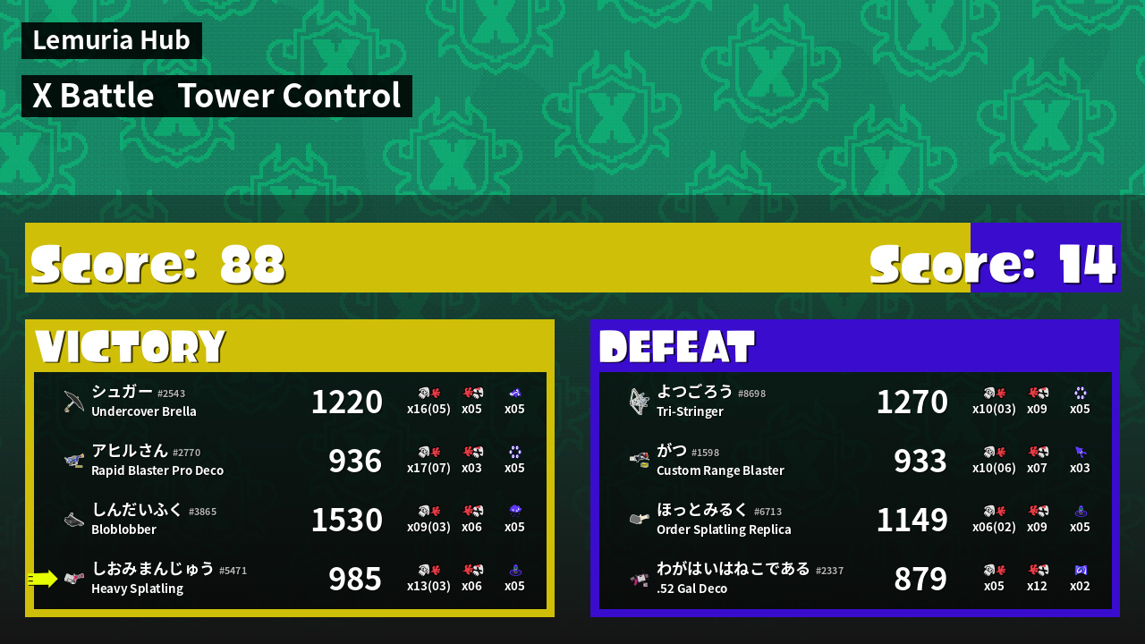| Mode | Tower Control - X Battle | ||