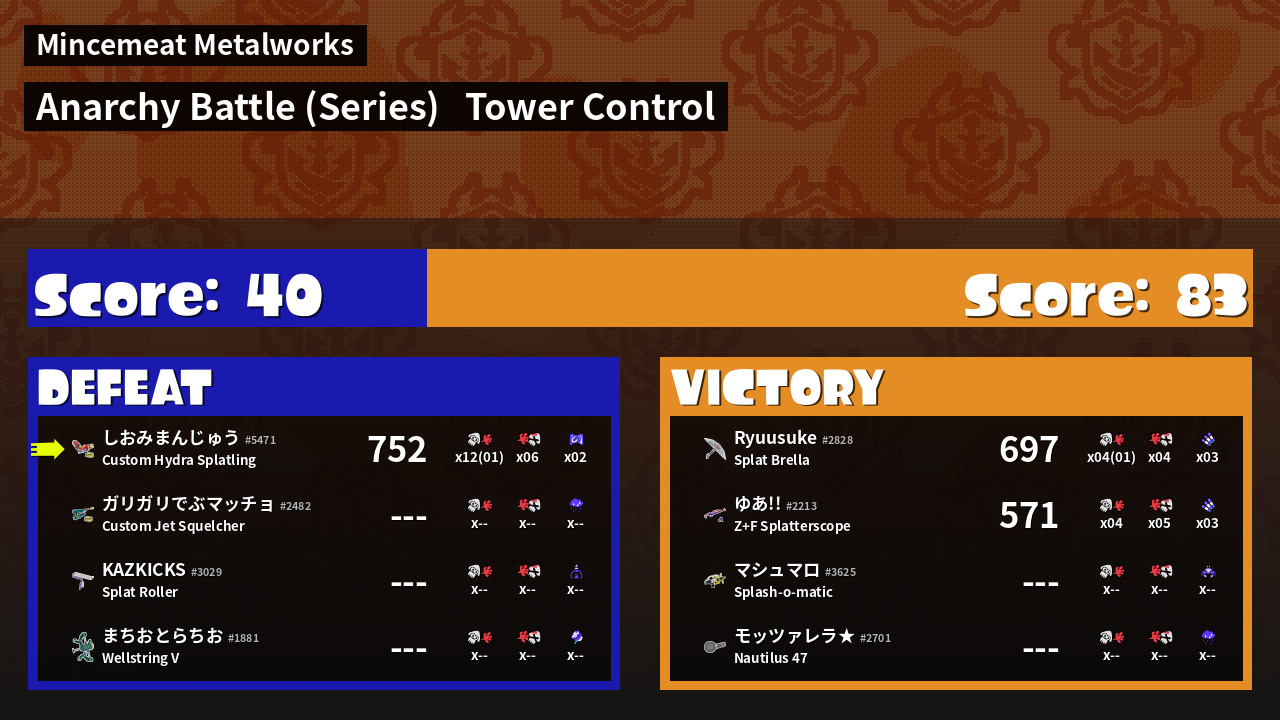 | Medals | #1 Overall Splatter #1 Turf Inker #1 Popular Target | ||