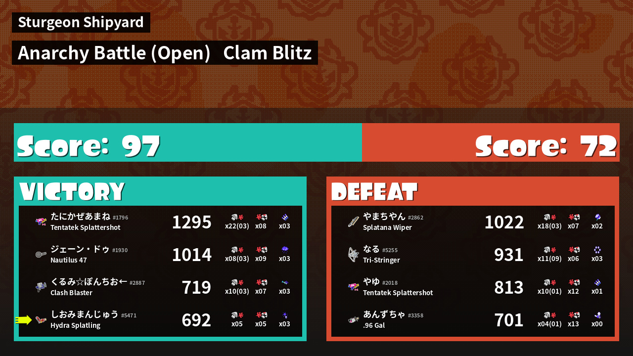 | Mode | Clam Blitz - Anarchy Battle (Open) | ||