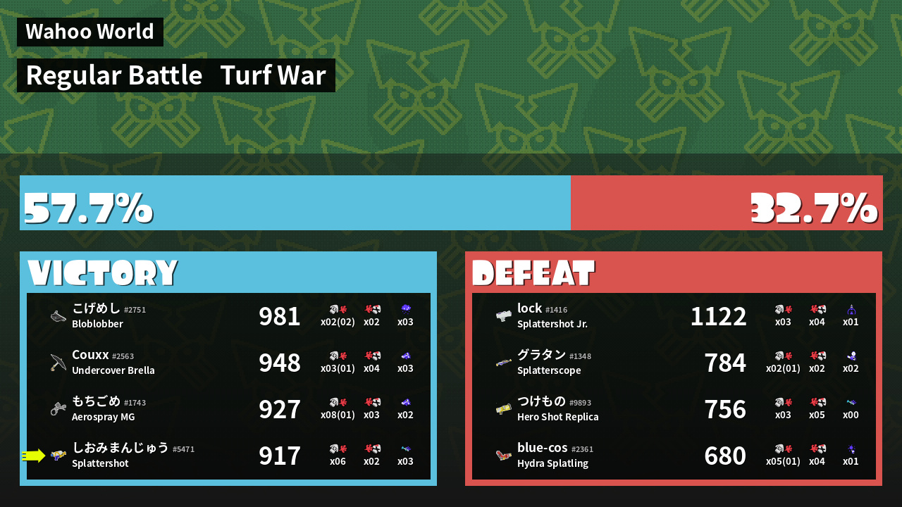 | Mode | Turf War - Regular Battle | ||