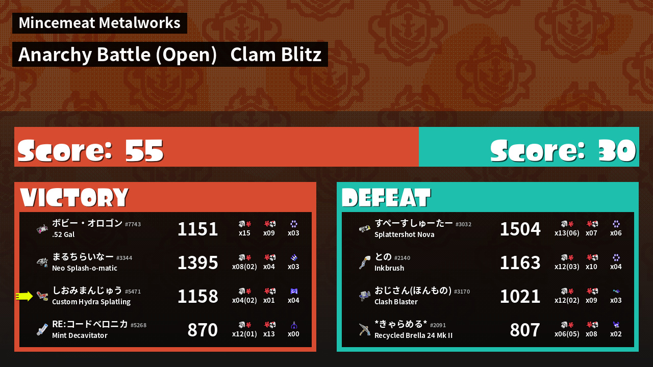 | Mode | Clam Blitz - Anarchy Battle (Open) | ||