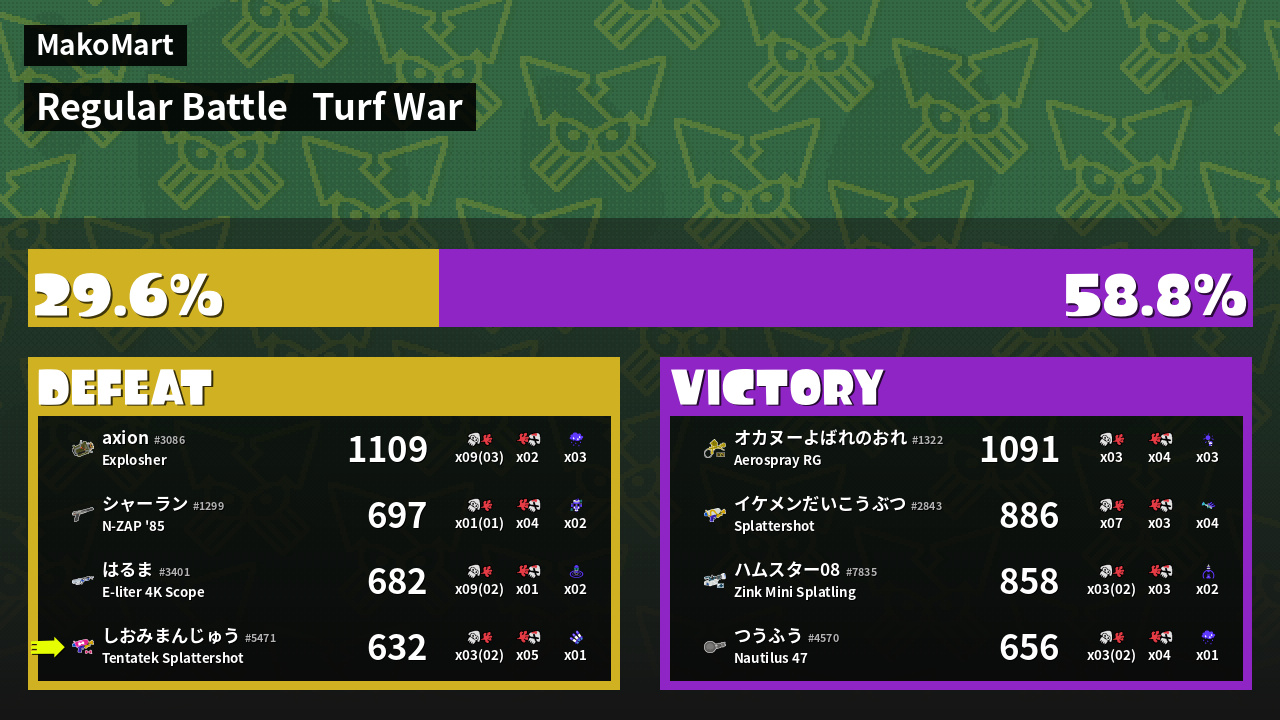 | Mode | Turf War - Regular Battle | ||