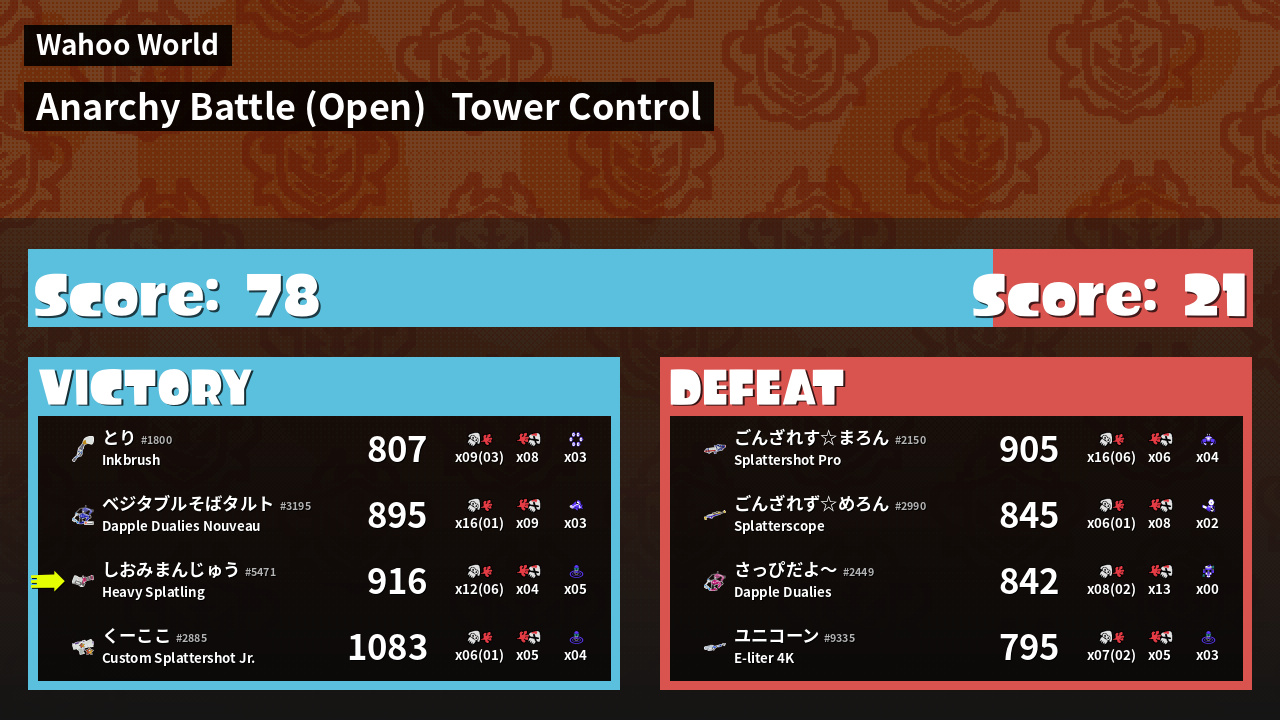 | Mode | Tower Control - Anarchy Battle (Open) | ||