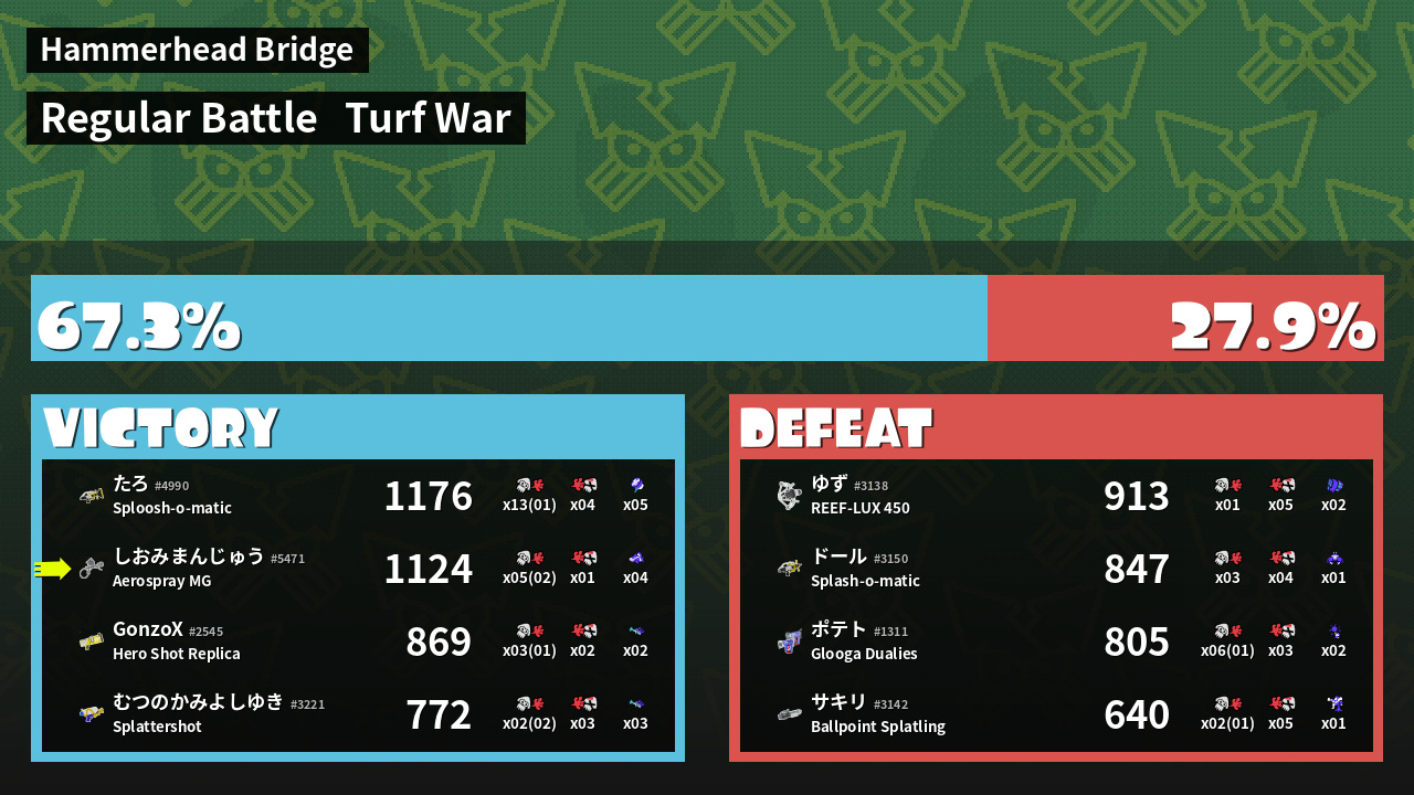 | Medals | #1 Splat Assister #1 Ink Consumer #2 Overall Splatter | ||