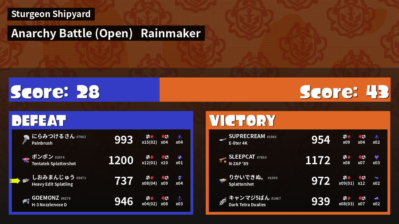 | Mode | Rainmaker - Anarchy Battle (Open) | ||