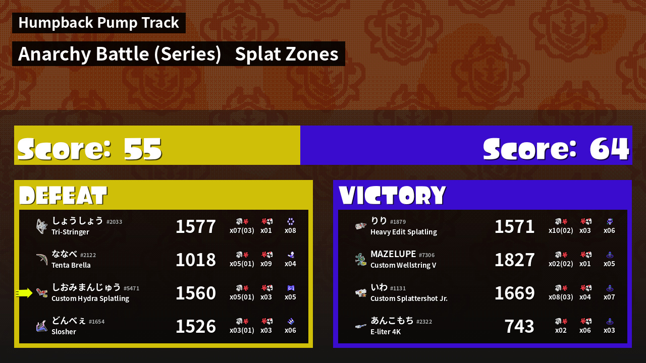 | Mode | Splat Zones - Anarchy Battle (Series) | ||