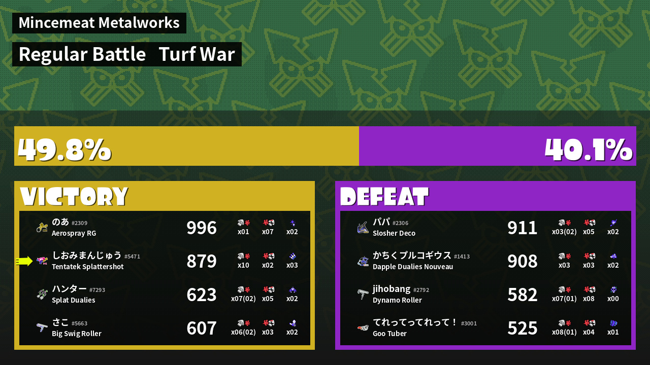 | Medals | #1 Overall Splatter #1 Enemy-Base Inker #1 Enemy Splatter | ||