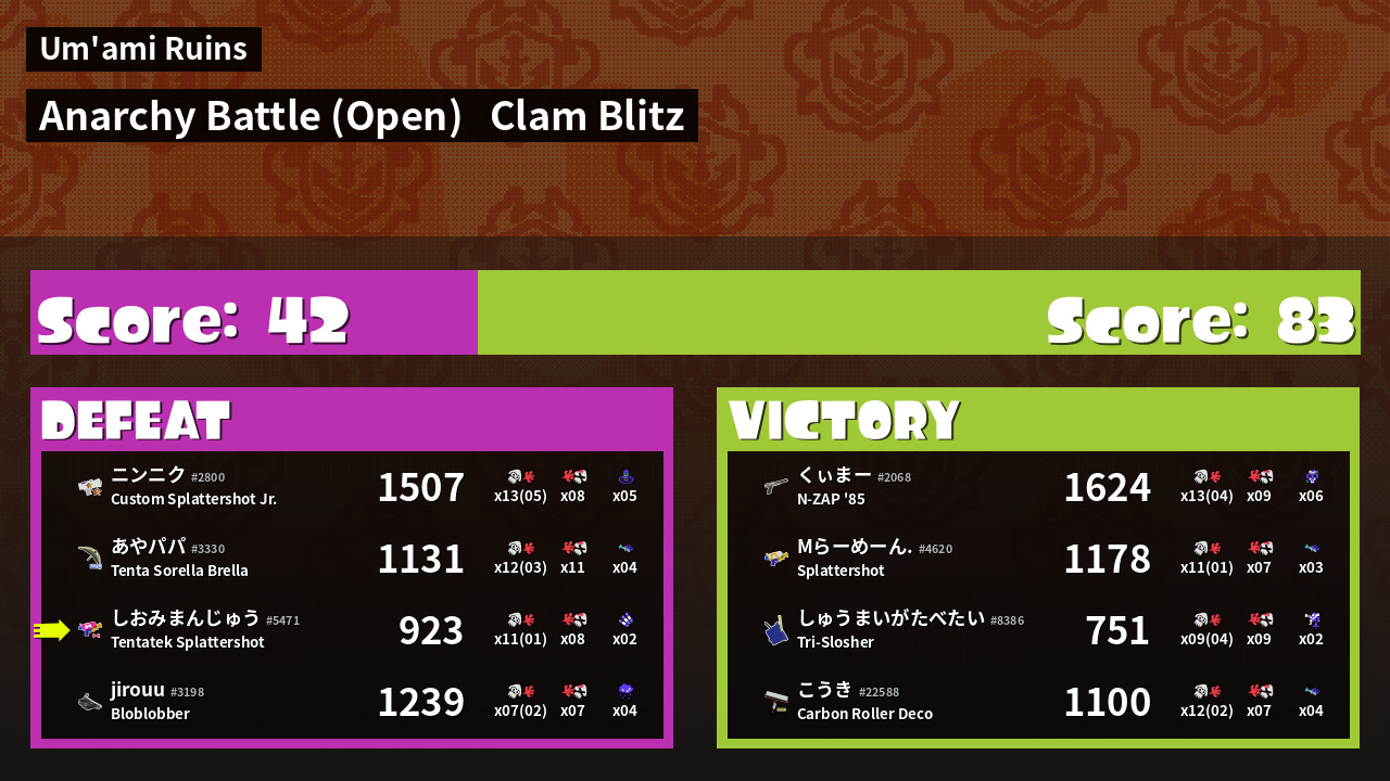 | Mode | Clam Blitz - Anarchy Battle (Open) | ||
