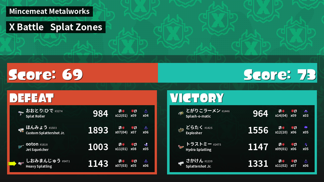 | Mode | Splat Zones - X Battle | ||