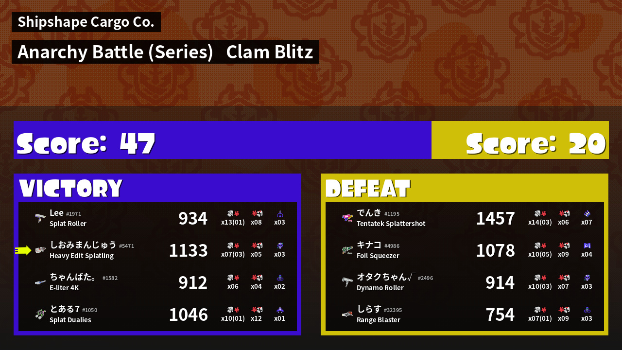 | Mode | Clam Blitz - Anarchy Battle (Series) | ||