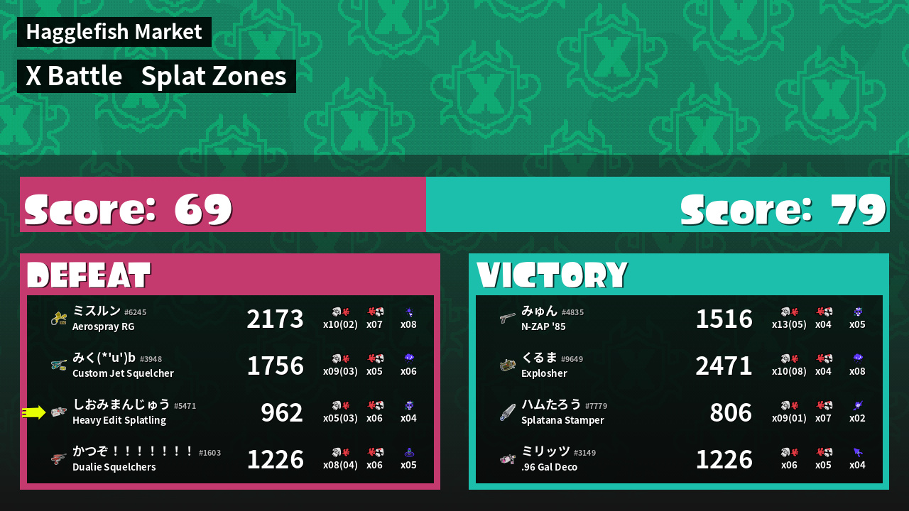 | Medals | #1 Splat Zone Guard #1 Super Jump Spot #1 Ground Traveler | ||
