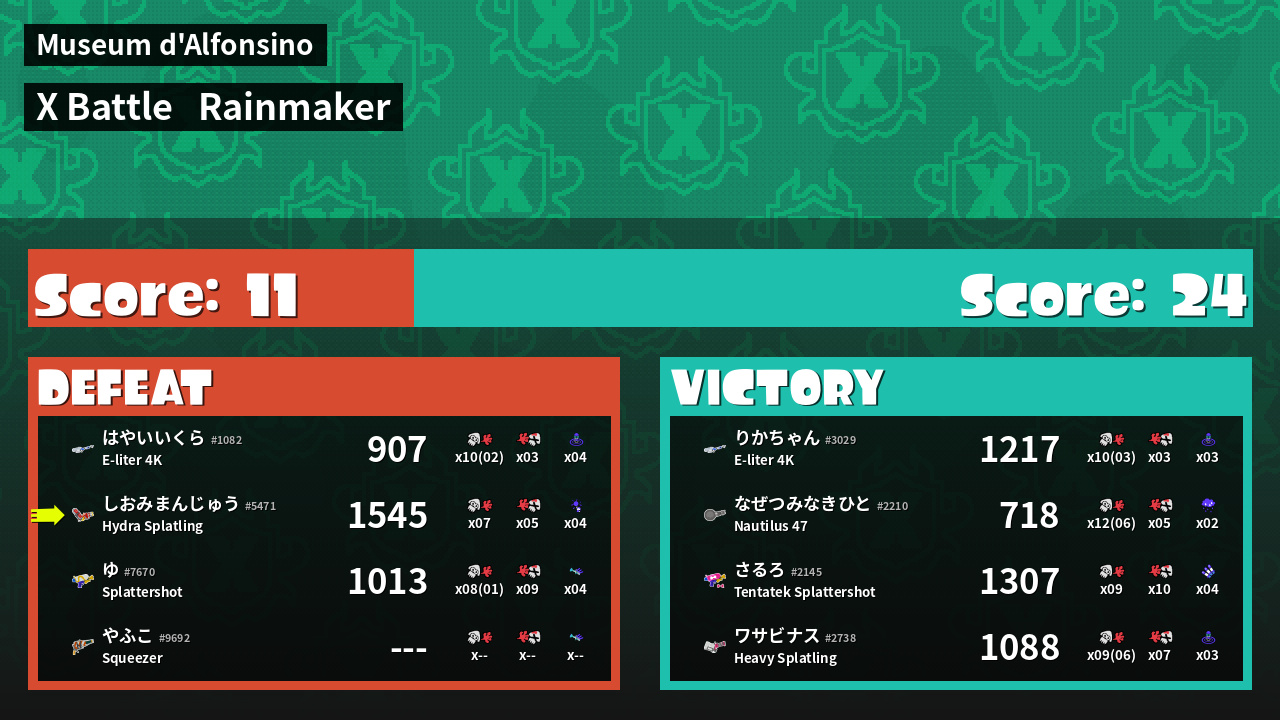 | Weapon | Hydra Splatling ( Autobomb / Booyah Bomb) | ||