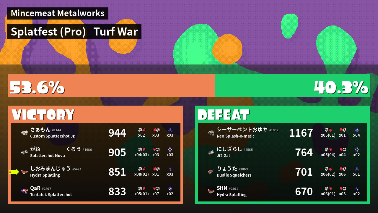 | Mode | Turf War - Splatfest (Pro) | ||
