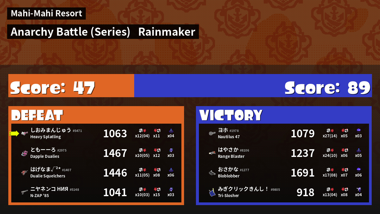 | Mode | Rainmaker - Anarchy Battle (Series) | ||