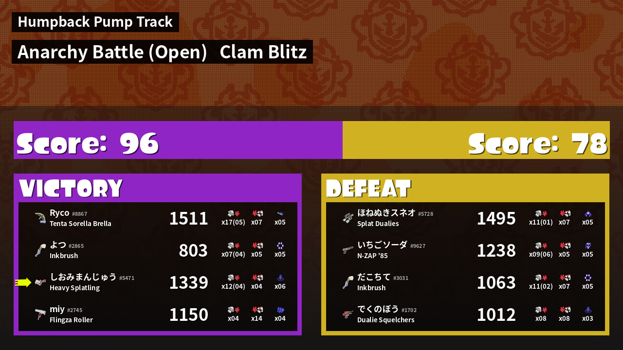 | Mode | Clam Blitz - Anarchy Battle (Open) | ||