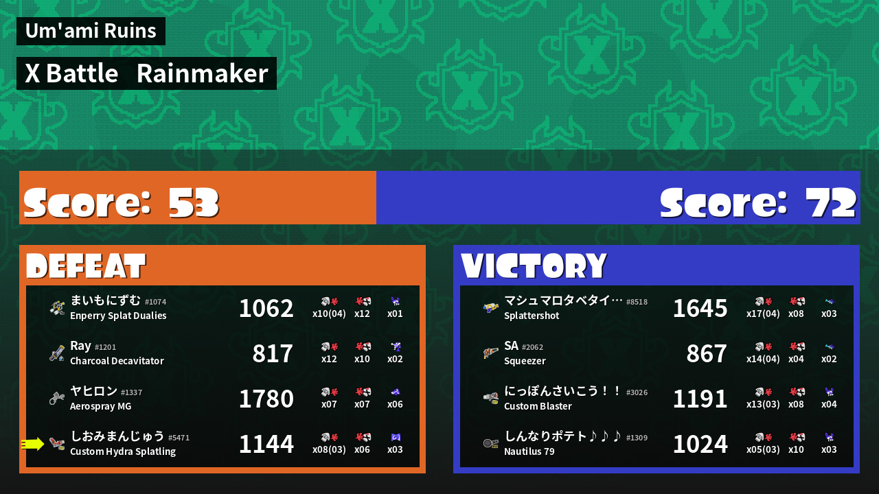 | Mode | Rainmaker - X Battle | ||