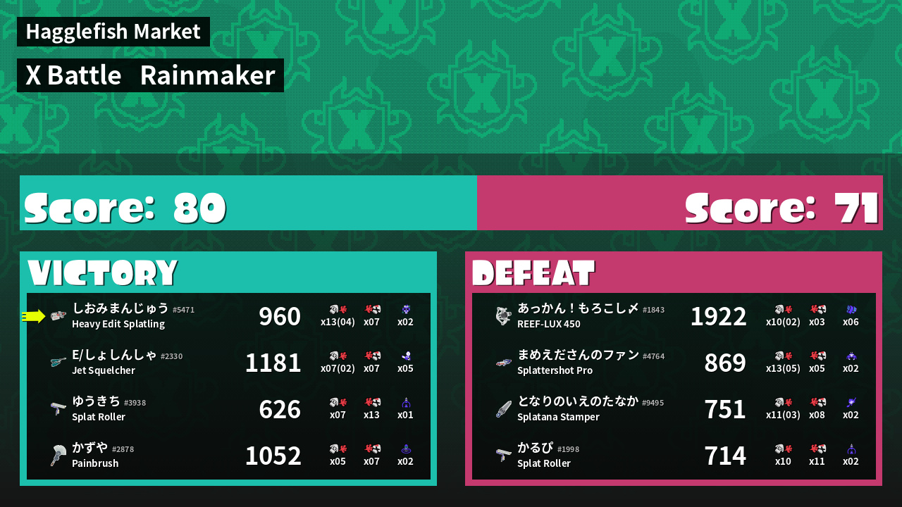 | Mode | Rainmaker - X Battle | ||