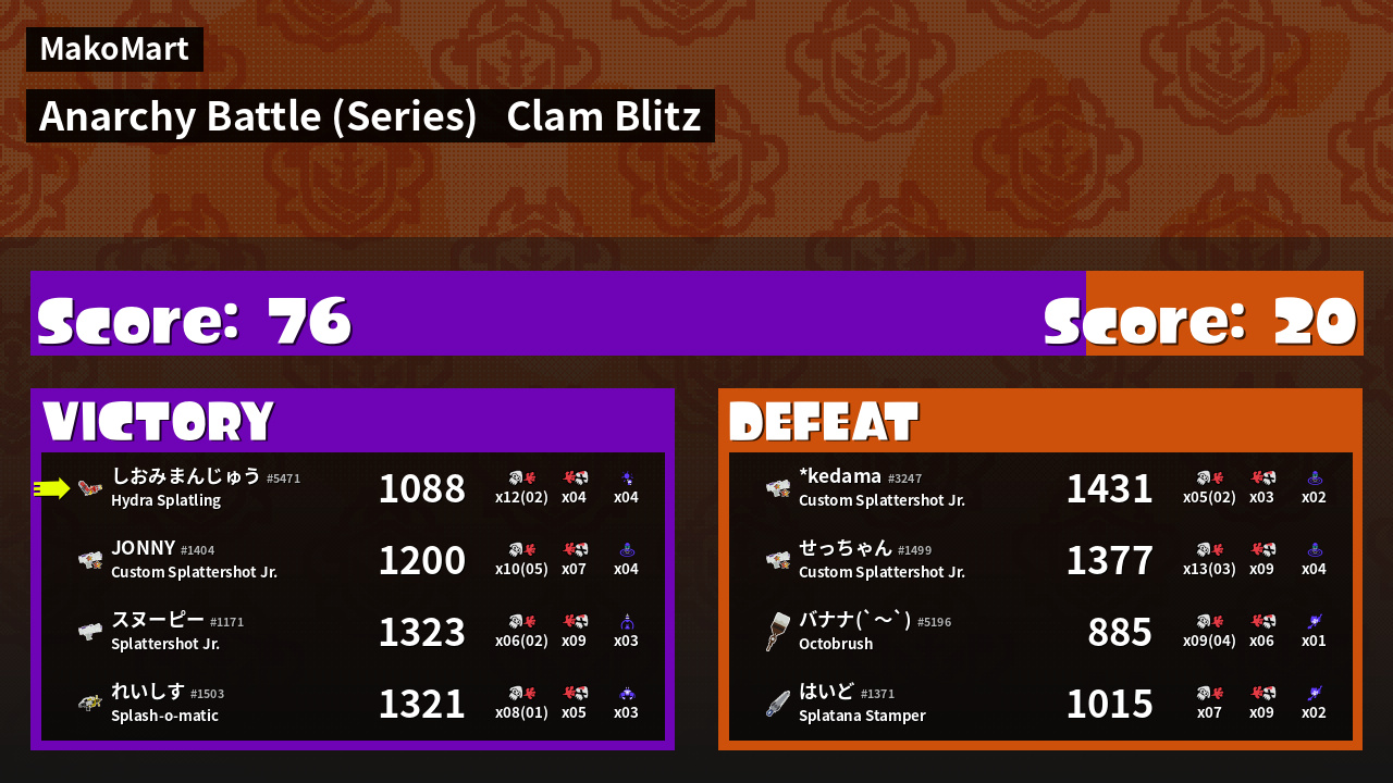 | Mode | Clam Blitz - Anarchy Battle (Series) | ||