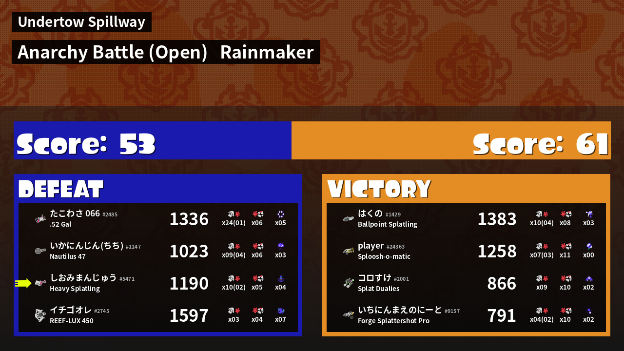 | Mode | Rainmaker - Anarchy Battle (Open) | ||