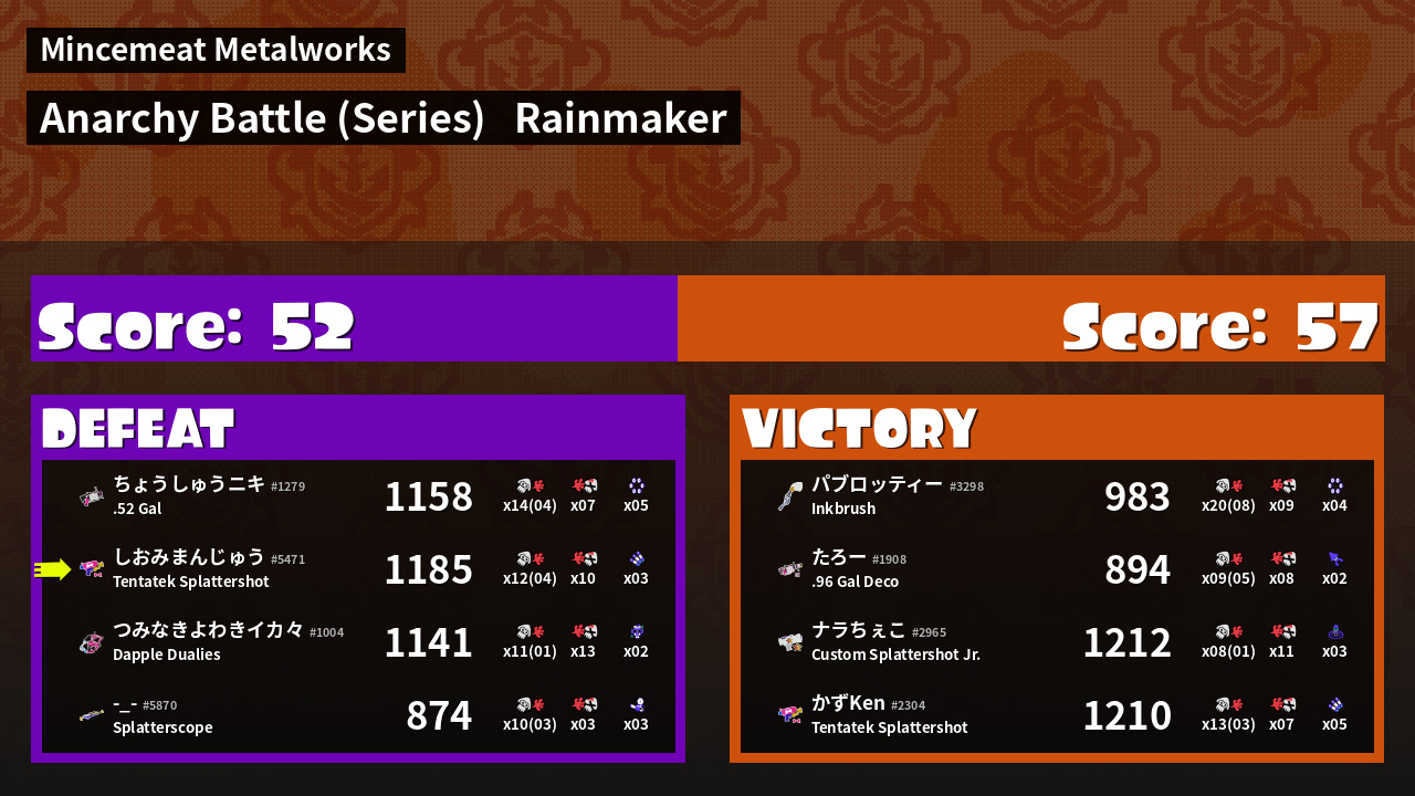 | Medals | #1 Turf Inker #1 Splat Assister #1 Ink Consumer | ||