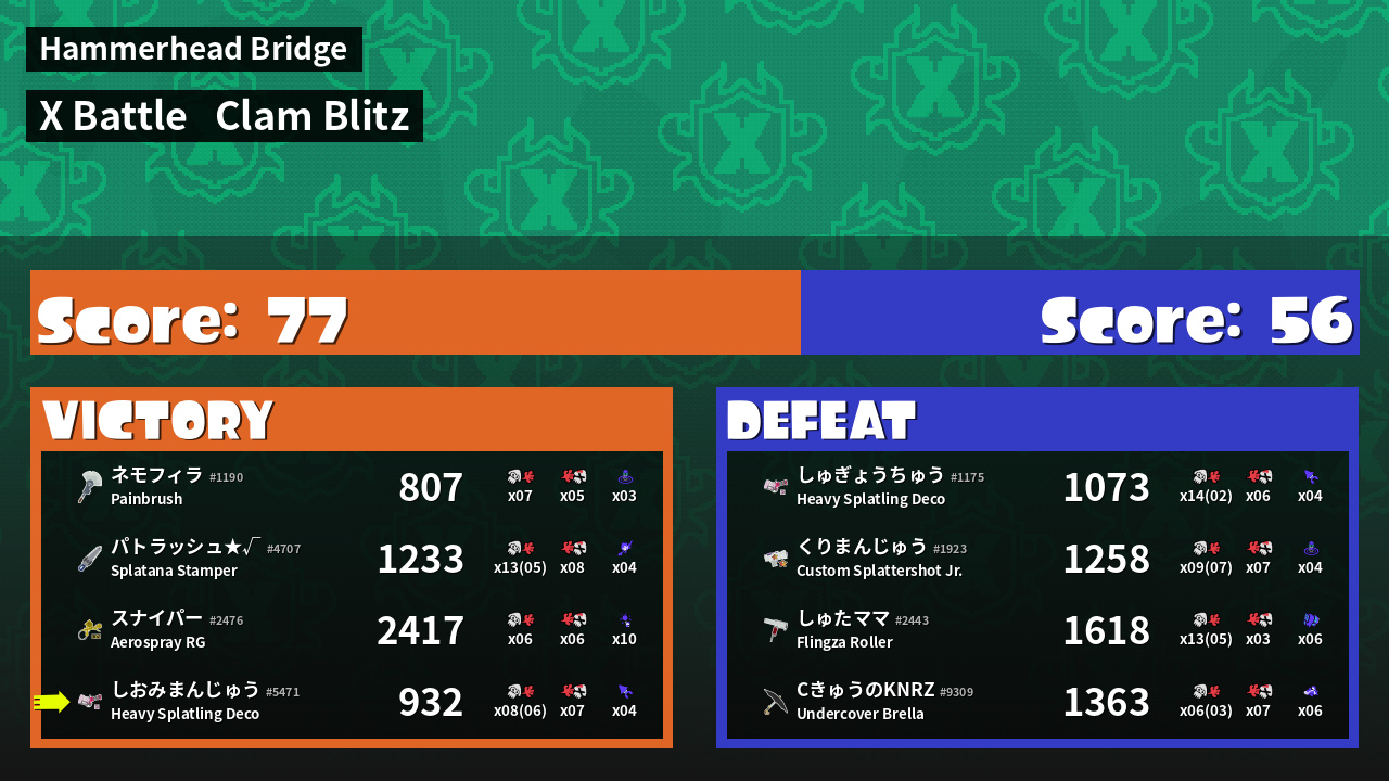 | Mode | Clam Blitz - X Battle | ||