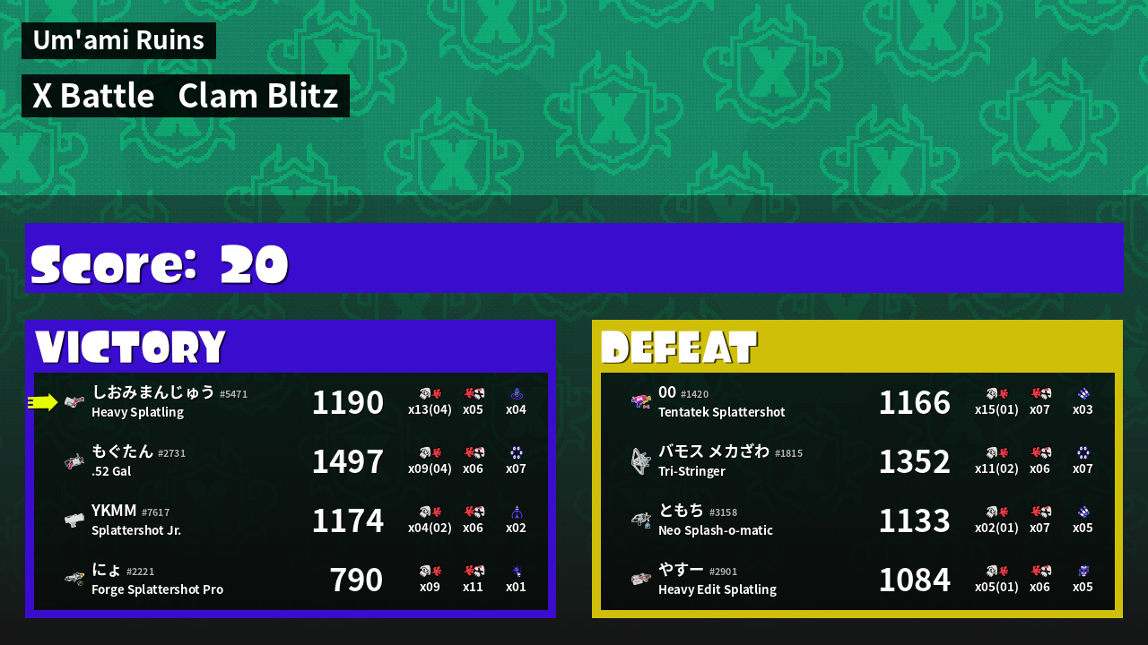 | Mode | Clam Blitz - X Battle | ||