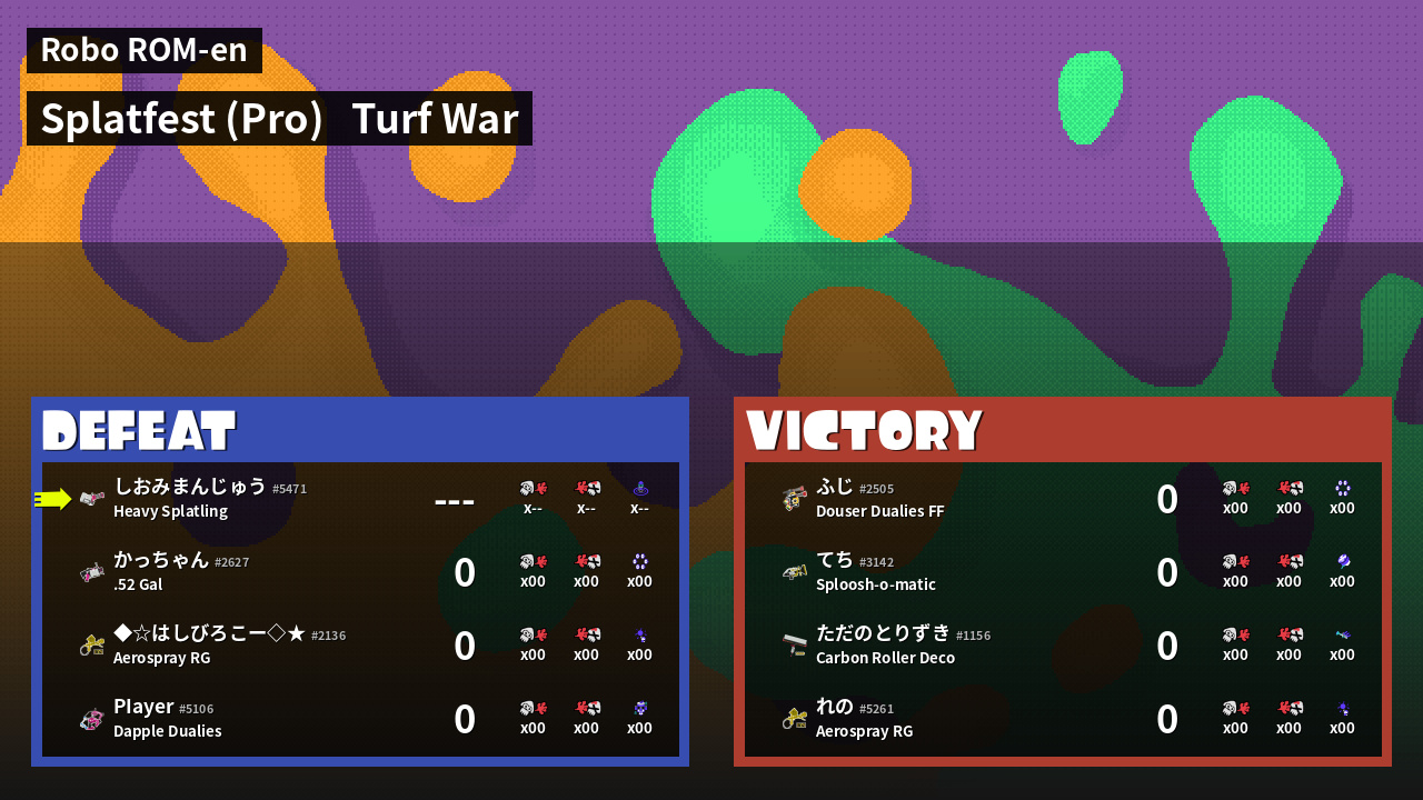 | Mode | Turf War - Splatfest (Pro) | ||