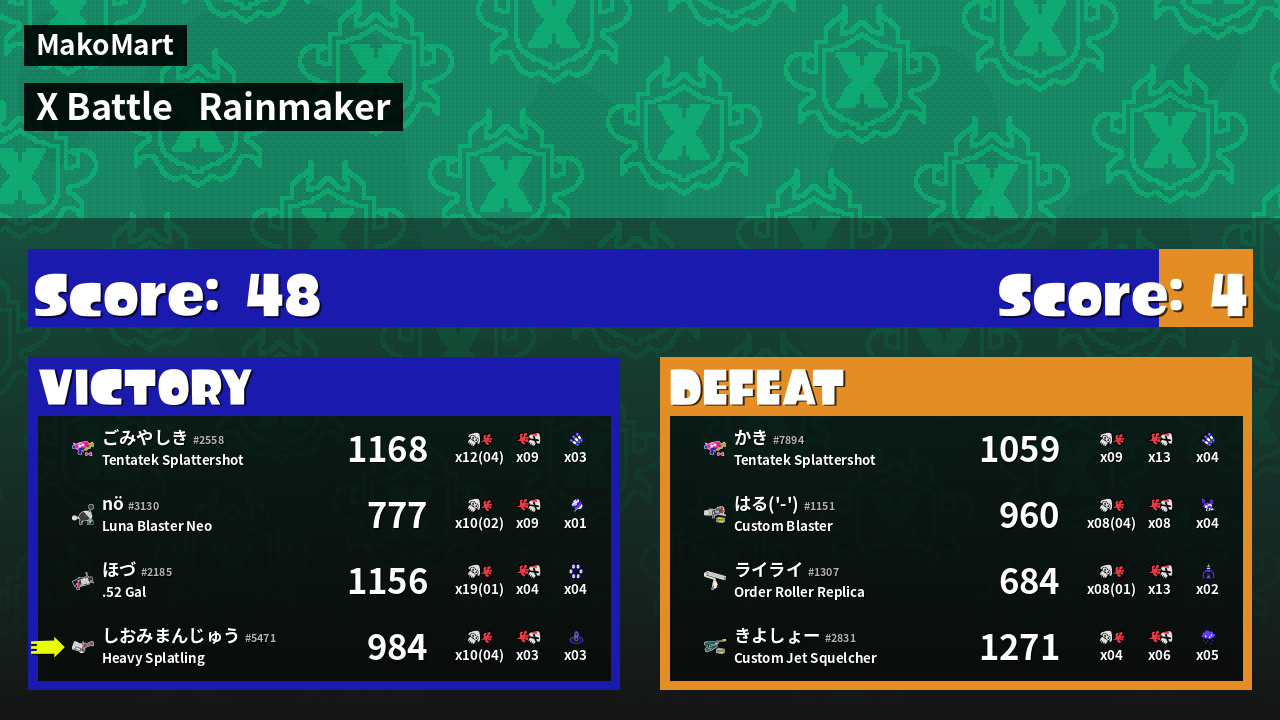 | Mode | Rainmaker - X Battle | ||
