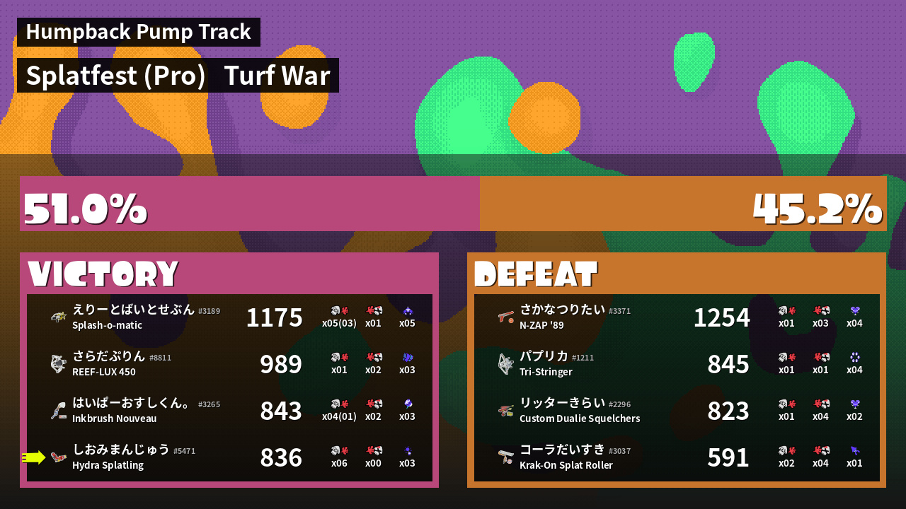 | Mode | Turf War - Splatfest (Pro) | ||