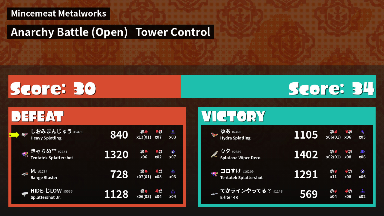 | Mode | Tower Control - Anarchy Battle (Open) | ||