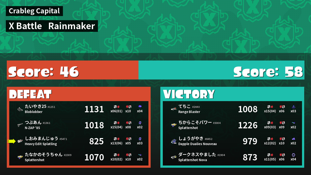 | Medals | #1 Super Jump Spot #1 Splat Assister #1 Damage Taker | ||