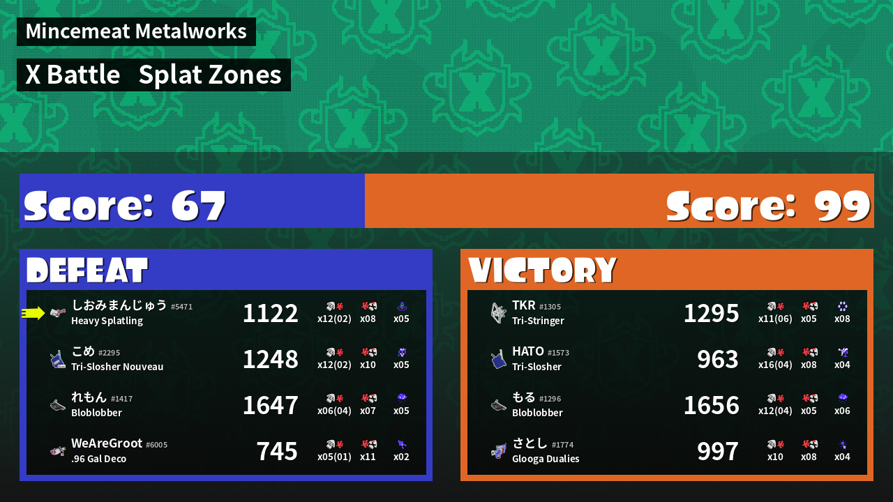 | Mode | Splat Zones - X Battle | ||
