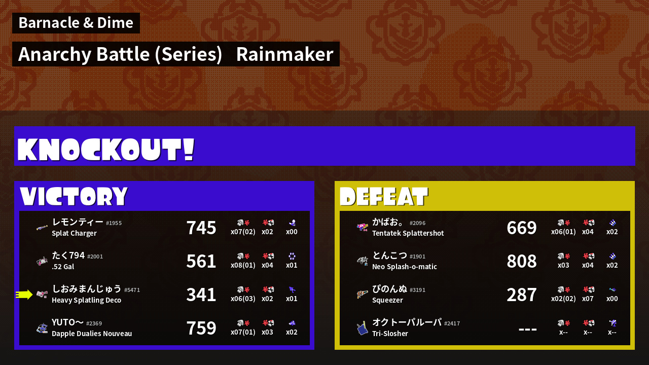 | Medals | #1 Super Jump Spot #1 Splat Assister #1 Ink Consumer | ||