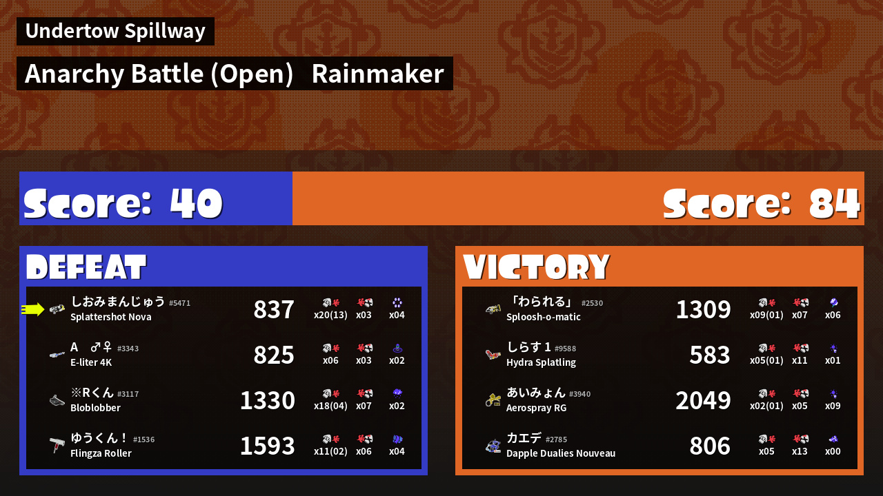 | Weapon | Splattershot Nova ( Point Sensor / Killer Wail 5.1) | ||