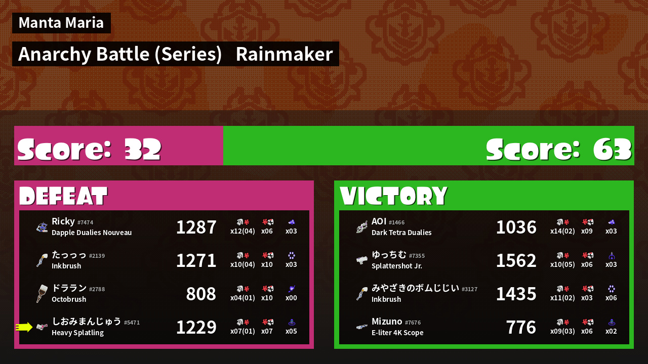 | Medals | #1 Wave Breaker User #2 Enemy Splatter | ||
