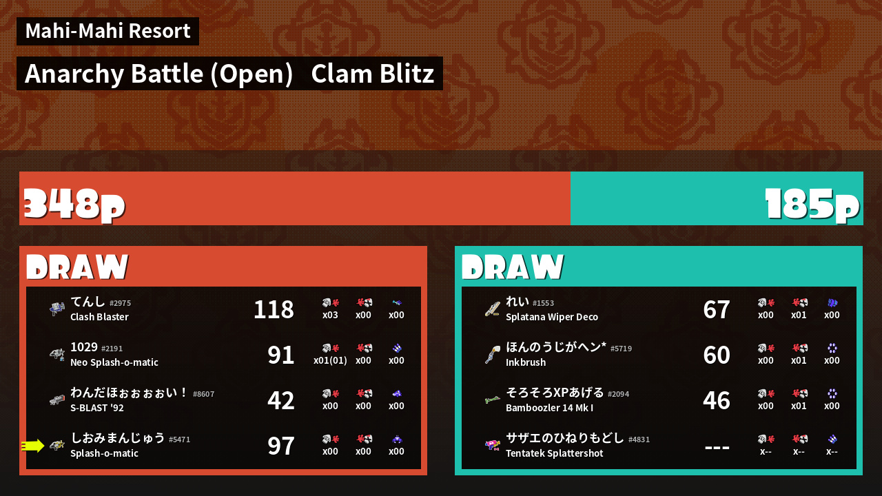 | Mode | Clam Blitz - Anarchy Battle (Open) | ||