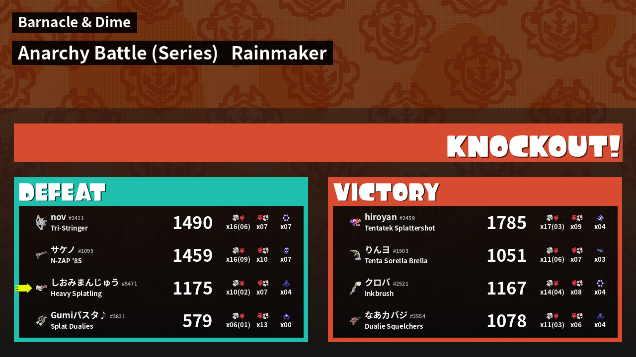 | Weapon | Heavy Splatling ( Sprinkler / Wave Breaker) | ||