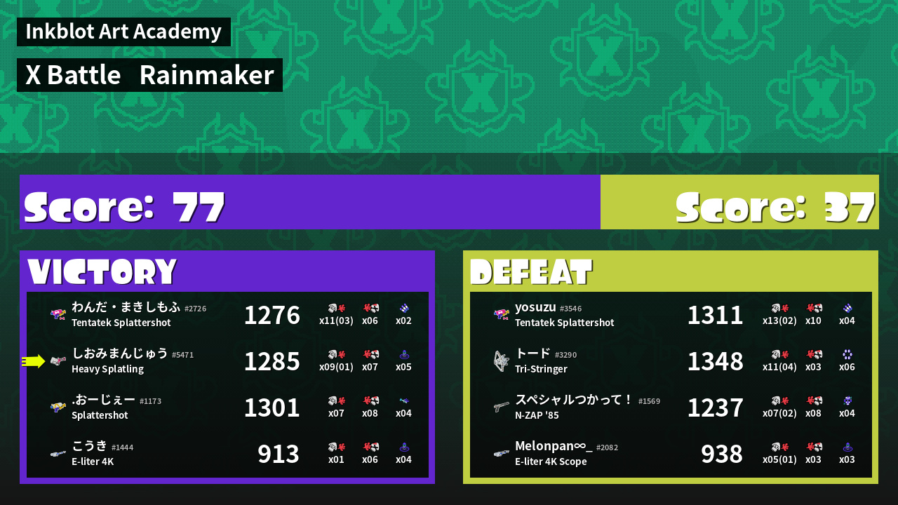 | Medals | #1 Enemy Splatter #1 Wave Breaker User #2 Overall Splatter | ||